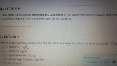 Solved Question 6 How Many Molecules Are Contained In 6 52 Chegg Com